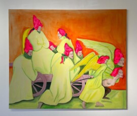 Podle křesťanství atributem věčného trápení nebo zkaženosti; středověkou Evropou považovaný za symbol zkázy, hříchu a zániku; v mytologii a alchymii znakem transformace a nového začátku – červ. V představách a obrazech Terezy Zichové neničí, tak jak je pro symbol červa do dnešních dob typické, ale přeměňuje. Jeho pohyb je pomalý, neúprosný, téměř nepostřehnutelný – a přesto zásadní. Je spojnicí mezi tím, co je viditelné, a tím, co se odehrává pod povrchem. Nese v sobě podvědomé vrstvy ženského prožívání: cykly, v nichž se tělo mění; instinkty, které nelze potlačit; vzpomínky, jež si uchovává, i to, co vědomí odmítá. Tak jako ubíhá den, ženský cyklus v měsíci, nebo snad cyklus lidského života a těla, které jednou skončí v zemi a uvolní místo pro nový život, tam všude je červ tichý průvodce propojující přírodní procesy s psychologií. Je důkazem, že proměna začíná uvnitř – často skrytá, neviditelná, v temných koutech mysli a paměti. Je obrazem rozpadu, z něhož se rodí nové. Žena, která se zde objevuje, není postava z pasivního vyprávění. Není čekající princeznou z pohádky, ani obětí okolností. Její tělo je mapou, kde se setkávají vědomé volby, instinktivní reakce a nevyřčené sny. Skutečná realita se neprojevuje v hluku, ale v jemném pohybu pod povrchem. Není vždy triumfální, ale často neviditelná, pomalá a přesto zásadní. Skrz obrazy se dostanete pod kůži samotné Terezy – příběhům, které ve své tvorbě reflektuje a nenápadnosti červa, který může být nejen znamením konce, ale i tichým začátkem všeho nového. – Adéla Šatalíková a Klára Heřmánková
