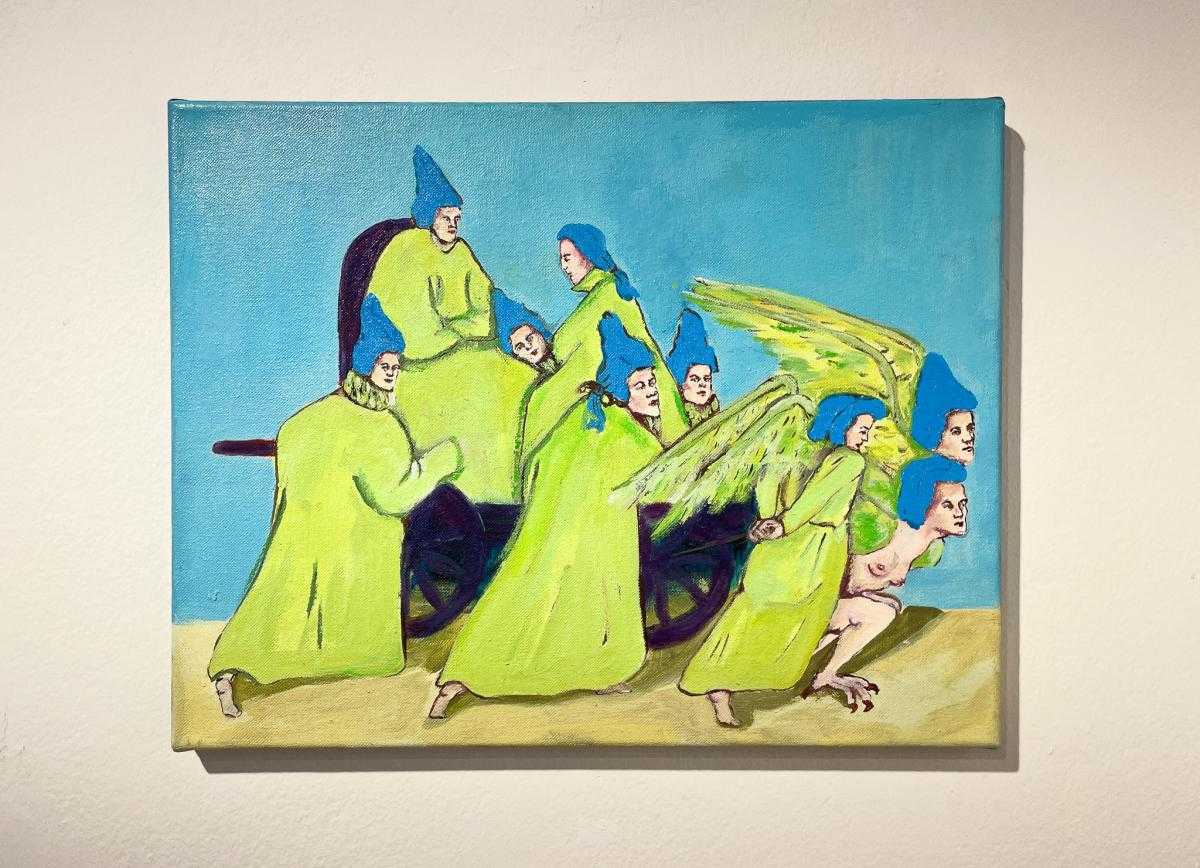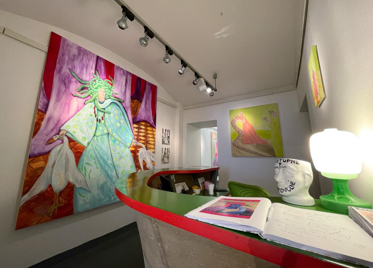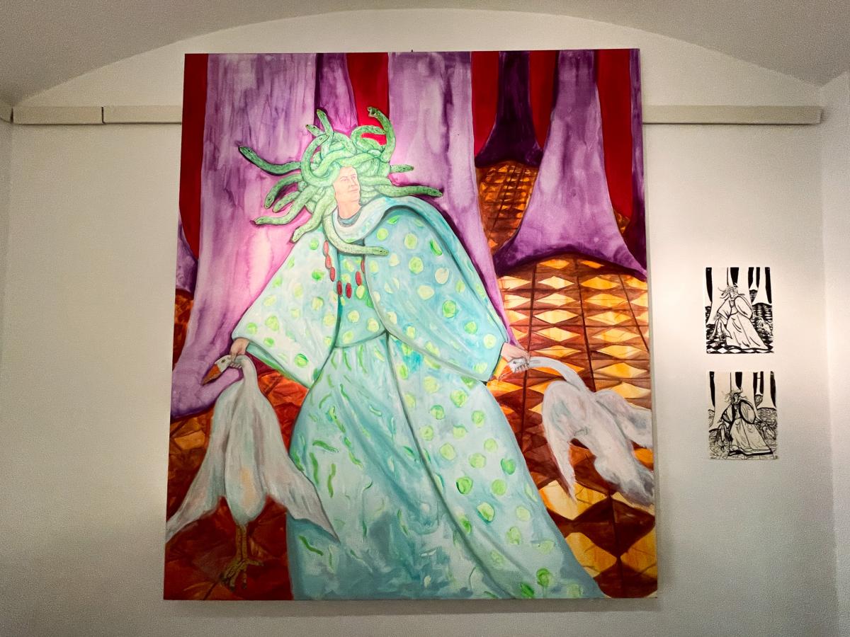 Podle křesťanství atributem věčného trápení nebo zkaženosti; středověkou Evropou považovaný za symbol zkázy, hříchu a zániku; v mytologii a alchymii znakem transformace a nového začátku – červ. V představách a obrazech Terezy Zichové neničí, tak jak je pro symbol červa do dnešních dob typické, ale přeměňuje. Jeho pohyb je pomalý, neúprosný, téměř nepostřehnutelný – a přesto zásadní. Je spojnicí mezi tím, co je viditelné, a tím, co se odehrává pod povrchem. Nese v sobě podvědomé vrstvy ženského prožívání: cykly, v nichž se tělo mění; instinkty, které nelze potlačit; vzpomínky, jež si uchovává, i to, co vědomí odmítá. Tak jako ubíhá den, ženský cyklus v měsíci, nebo snad cyklus lidského života a těla, které jednou skončí v zemi a uvolní místo pro nový život, tam všude je červ tichý průvodce propojující přírodní procesy s psychologií. Je důkazem, že proměna začíná uvnitř – často skrytá, neviditelná, v temných koutech mysli a paměti. Je obrazem rozpadu, z něhož se rodí nové. Žena, která se zde objevuje, není postava z pasivního vyprávění. Není čekající princeznou z pohádky, ani obětí okolností. Její tělo je mapou, kde se setkávají vědomé volby, instinktivní reakce a nevyřčené sny. Skutečná realita se neprojevuje v hluku, ale v jemném pohybu pod povrchem. Není vždy triumfální, ale často neviditelná, pomalá a přesto zásadní. Skrz obrazy se dostanete pod kůži samotné Terezy – příběhům, které ve své tvorbě reflektuje a nenápadnosti červa, který může být nejen znamením konce, ale i tichým začátkem všeho nového. – Adéla Šatalíková a Klára Heřmánková