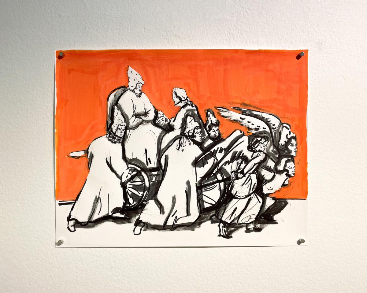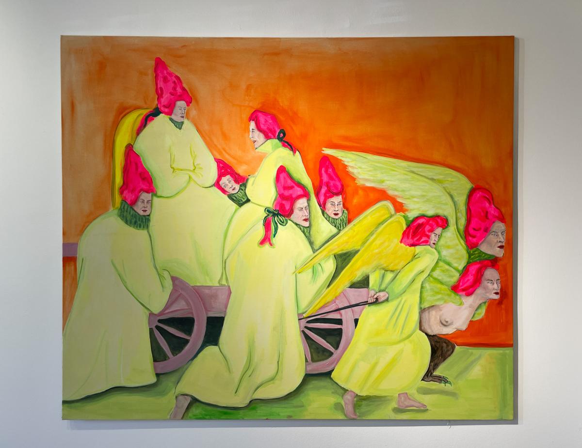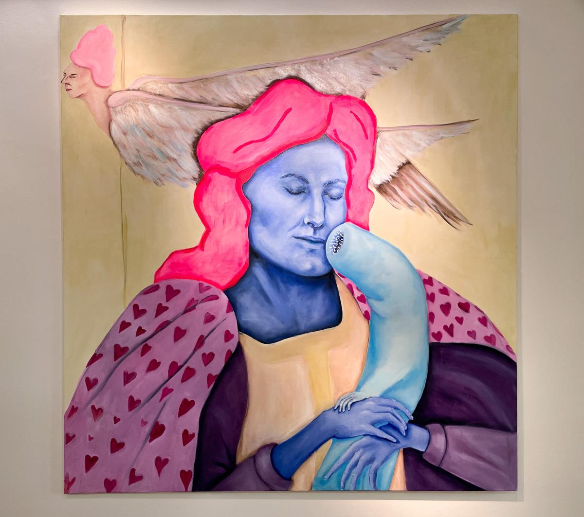 Podle křesťanství atributem věčného trápení nebo zkaženosti; středověkou Evropou považovaný za symbol zkázy, hříchu a zániku; v mytologii a alchymii znakem transformace a nového začátku – červ. V představách a obrazech Terezy Zichové neničí, tak jak je pro symbol červa do dnešních dob typické, ale přeměňuje. Jeho pohyb je pomalý, neúprosný, téměř nepostřehnutelný – a přesto zásadní. Je spojnicí mezi tím, co je viditelné, a tím, co se odehrává pod povrchem. Nese v sobě podvědomé vrstvy ženského prožívání: cykly, v nichž se tělo mění; instinkty, které nelze potlačit; vzpomínky, jež si uchovává, i to, co vědomí odmítá. Tak jako ubíhá den, ženský cyklus v měsíci, nebo snad cyklus lidského života a těla, které jednou skončí v zemi a uvolní místo pro nový život, tam všude je červ tichý průvodce propojující přírodní procesy s psychologií. Je důkazem, že proměna začíná uvnitř – často skrytá, neviditelná, v temných koutech mysli a paměti. Je obrazem rozpadu, z něhož se rodí nové. Žena, která se zde objevuje, není postava z pasivního vyprávění. Není čekající princeznou z pohádky, ani obětí okolností. Její tělo je mapou, kde se setkávají vědomé volby, instinktivní reakce a nevyřčené sny. Skutečná realita se neprojevuje v hluku, ale v jemném pohybu pod povrchem. Není vždy triumfální, ale často neviditelná, pomalá a přesto zásadní. Skrz obrazy se dostanete pod kůži samotné Terezy – příběhům, které ve své tvorbě reflektuje a nenápadnosti červa, který může být nejen znamením konce, ale i tichým začátkem všeho nového. – Adéla Šatalíková a Klára Heřmánková